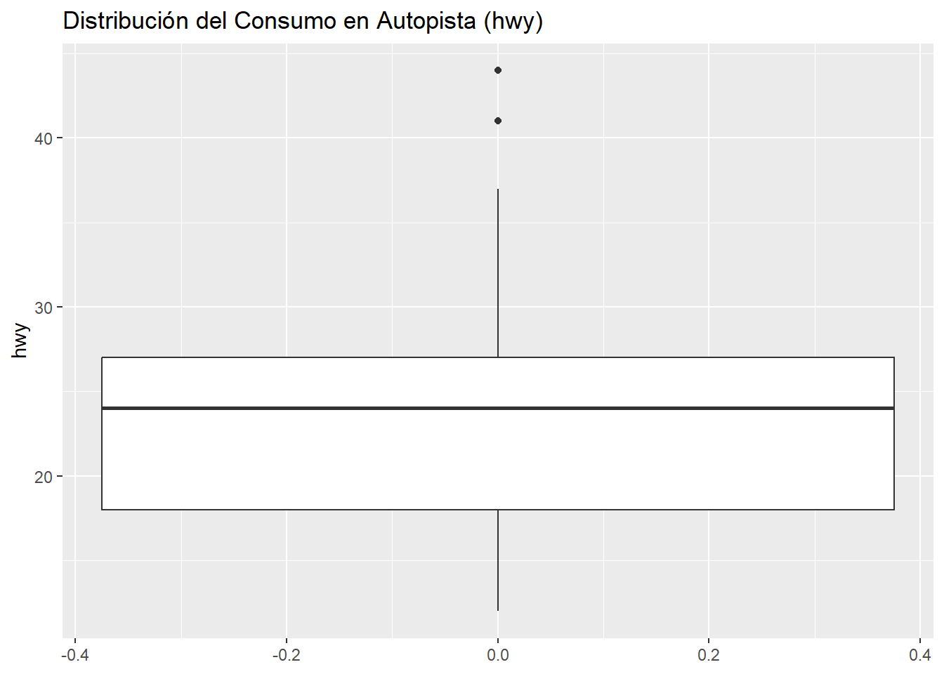 Vamos a usar el dataset mpg para explorar la distribución del consumo en autopista (hwy).